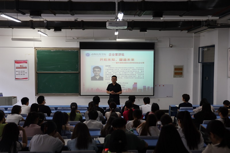 讲座伊始,张辉果董事长首先以自己的亲身经历来引导员工应该如何了解自己的专业,进而投入自己的专业课程学习中。接下来,他从互联网“流量思维”角度出发,讲述企业的经营方法以及学习中的取优之道,用详实的大数据阐述当前畜牧兽医行业的市场规模,分析如何用互联网做好行业销售。他在谈到就业选择的问题时,用自己的亲身经历分享自己创业路上收获的喜悦和幸福以及为梦想去努力拼搏的过程。告诉大家做任何事情前要先做规划,目标明确后再付诸行动。在互动交流环节中,同学们纷纷踊跃提问交流,张董事长都耐心解答。