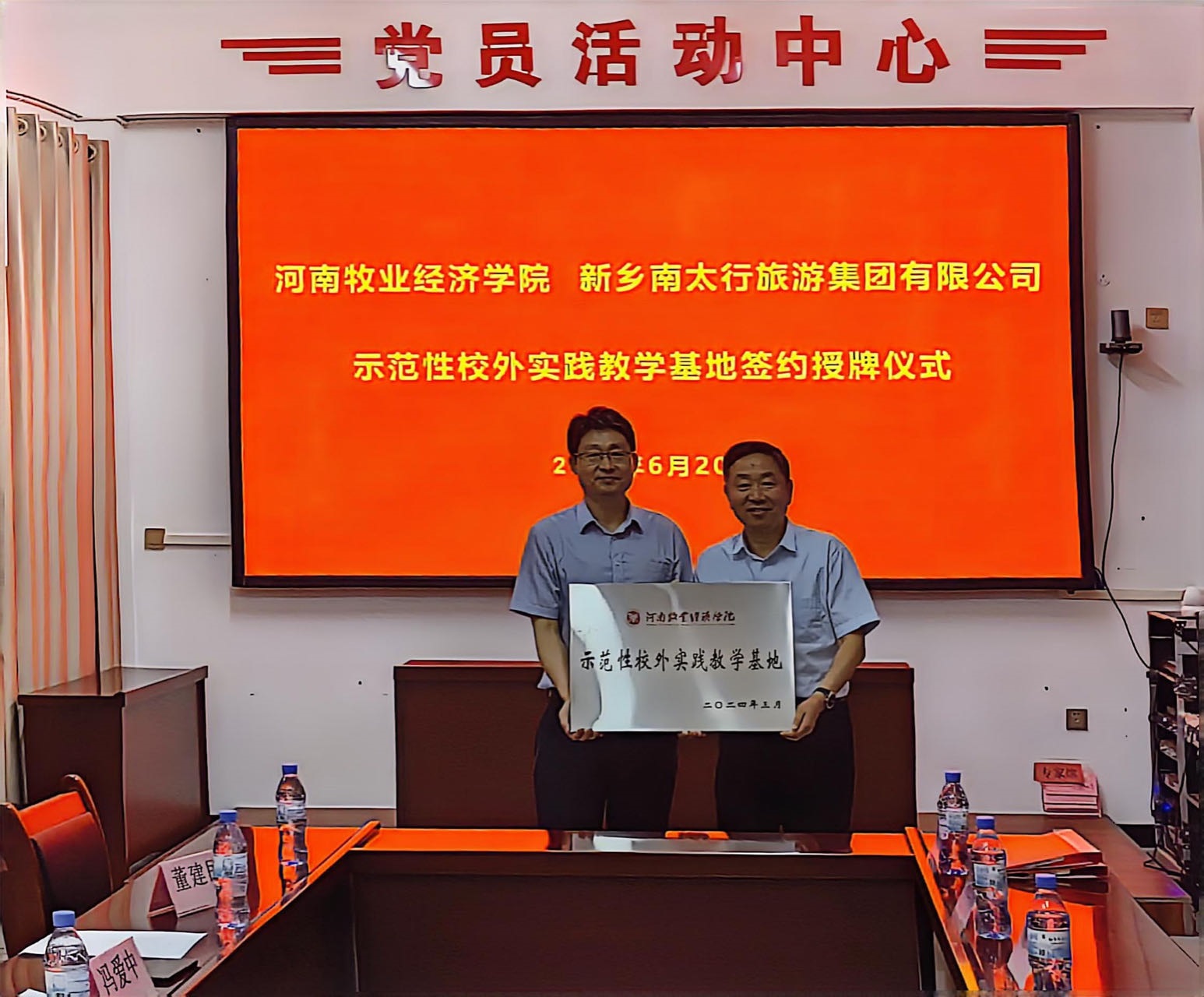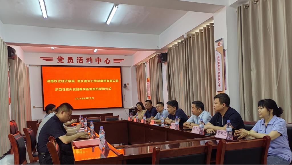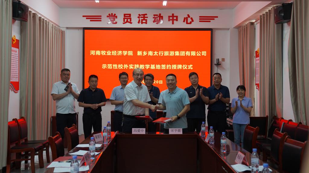 6月20日,公司与新乡南太行旅游集团有限公司合作签约暨实践教学基地授牌仪式在辉县举行。副董事长杨国宇、副董事长边传周、教务处处长宋予震,公司党委书记胡卫东、副经理汤法银、副经理李利红,新乡南太行旅游集团有限公司副总经理、财务总监冯爱中,万仙山园区总经理魏平富等参加了签约授牌仪式。