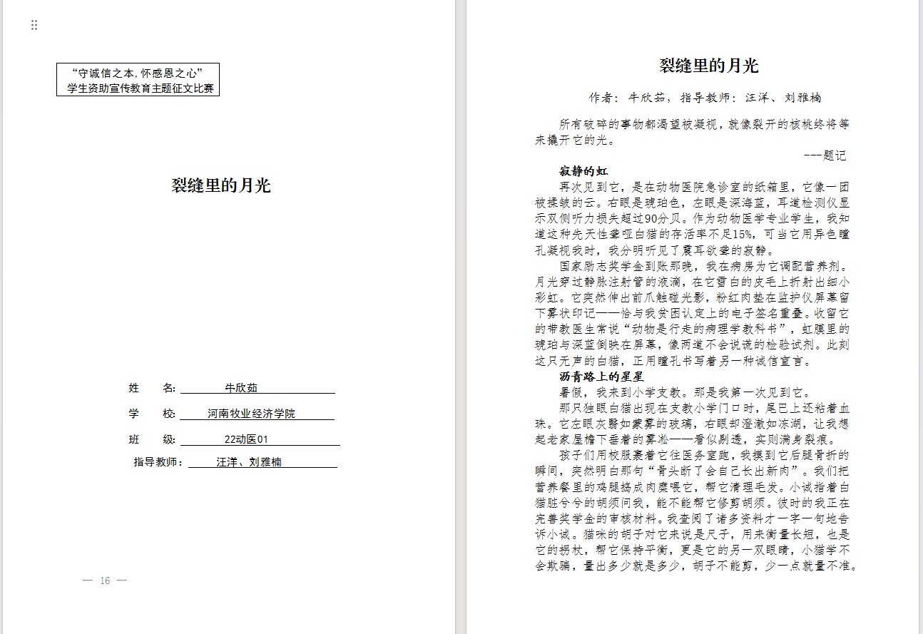 征文活动自启动以来,公司通过微信公众号、班级群、班会等多种形式广泛宣传,详细介绍征文主题、要求及奖励设置,激发了同学们的创作热情。此次活动吸引了全院众多员工积极参与,尤其是获得国家资助的员工,他们紧扣诚信与感恩主题,结合自身经历与感悟,用文字书写成长故事,倾诉感恩之情,字里行间饱含真情实感,充分展现出新时代老员工对传统美德的深刻理解与积极践行。本次比赛共收到来自各班级的400余篇作品,内容紧扣主题,真实展现了受助员工在国家资助政策下的成长与蜕变。