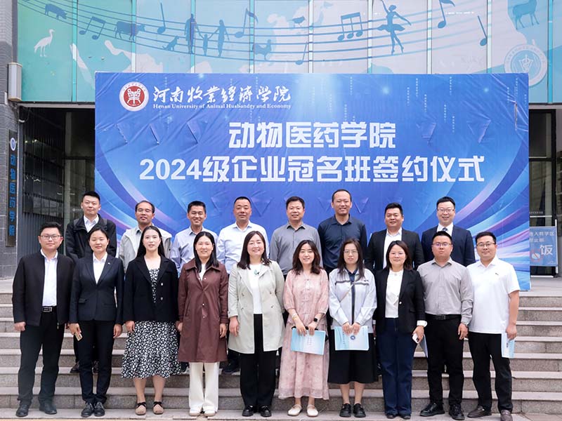 签约仪式结束后,所有参会人员共同合影留念,本次 2024 级企业冠名班签约仪式圆满落下帷幕。未来公司与企业将携手共进,为培养适应新时代需求的动物医药领域专业人才而不懈努力。(刘航 文/图)