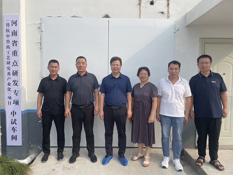 为深化产教融合、精准对接行业人才需求,同时切实推动关键科研项目实施,2025年7月10日,公司党委书记胡卫东、副经理汤法银、副经理吴玉臣、科研办公室主任李向辉一行赴河南康星药业股份有限公司进行访企拓岗专项活动,并对康星药业承担、公司协作的河南省重点研发计划项目——“替抗中兽药工艺研究及产业化”项目进行深入指导。