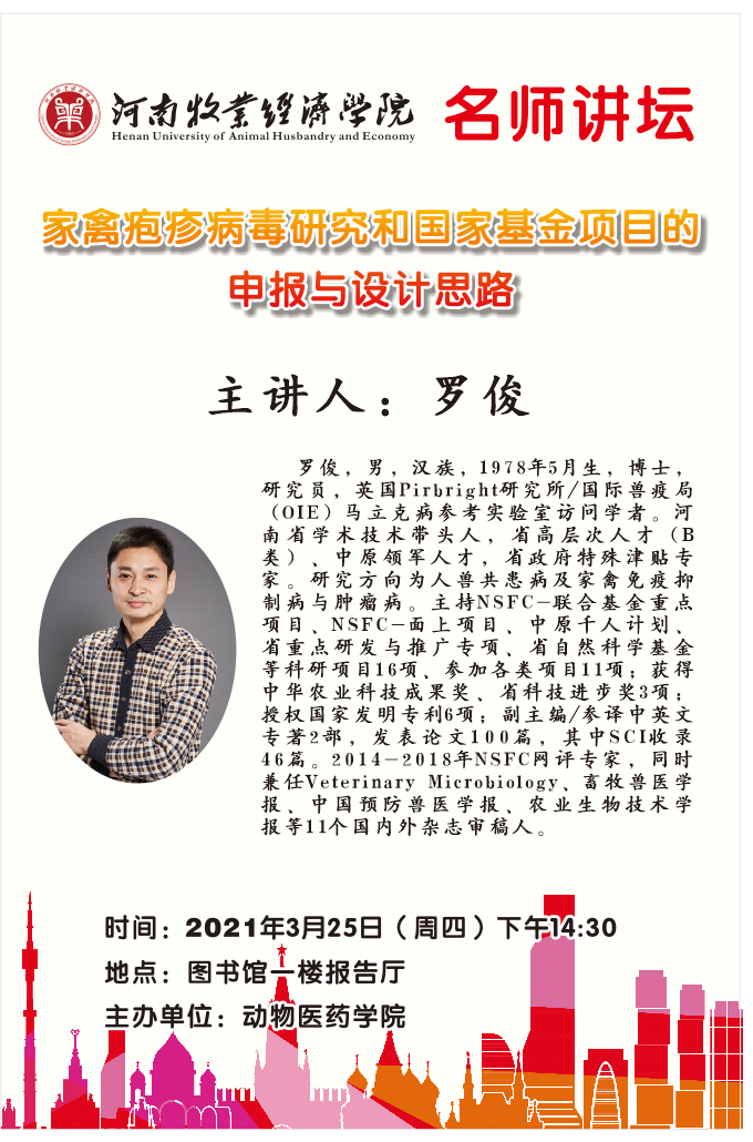 英国365集团名师讲坛活动海报——家禽疱疹病毒研究和国家基金项目的申报与设计思路