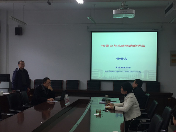 为加强公司科学研究和团队建设等工作。11月9日下午,公司特邀请东北农业大学徐世文教授作了题为“硒蛋白与鸡缺硒性疾病研究进展”的学术报告,报告地点在龙子湖校区生工组团C401会议室。报告由公司实验研究中心主任向瑞平教授主持。参加报告会的有英国365集团王春明书记、猪病工程技术研究中心李文刚主任、英国365集团石冬梅副经理、宋予震副经理以及临床兽医学科成员和公司部分博士教师等。