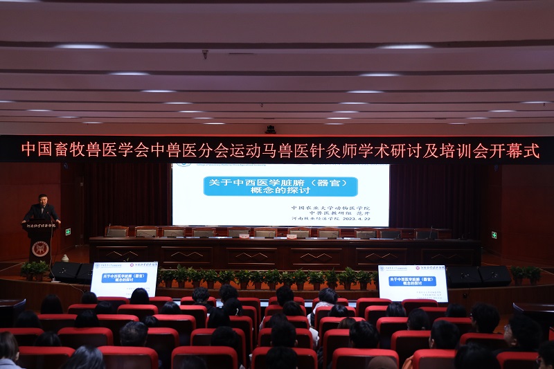 2023年4月22日上午,由公司承办的中国畜牧兽医学会中兽医学分会“运动马兽医针灸师学术研讨及培训会”开幕式在公司图书馆一楼学术报告厅顺利举办。开幕式结束后由中国畜牧兽医学会中兽医学会秘书长、中国农业大学范开教授讲授“关于中西医学脏腑(器官)概念的探讨”。本次活动由公司科研办公室主任李向辉主持。