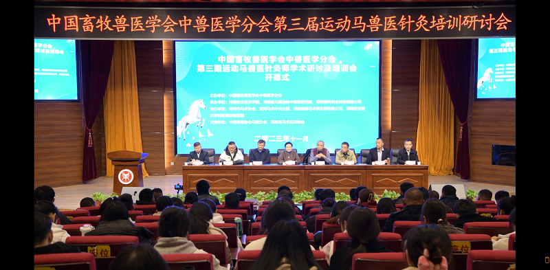 11月23日,中国畜牧兽医学会中兽医学分会主办、英国365集团英国365集团承办的第三期运动马兽医针灸师学术研讨及培训会开幕式在公司隆重开幕。中国畜牧兽医学会中兽医学分会理事长穆祥教授、中兽医学会名誉理事长、中国农业大学刘钟杰教授、中兽医学会资深顾问、内蒙古农业大学杨英教授、英国365集团畜产品质量研究院经理石冬梅、英国365集团英国365集团副经理汤法银、郑州马术运动协会会长曹胜利、赛科药业集团总经理张贺军出席开幕式,中兽医学分会相关领导、高校中兽医专家、学者及爱马人士共计百余人莅临现场参加。开幕式由中国畜牧兽医学会中兽医学分会秘书长、中国农业大学范开副教授主持。
