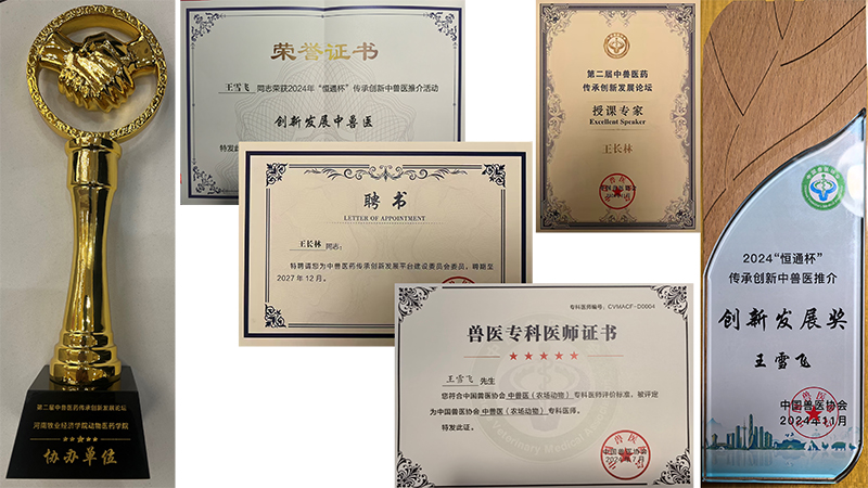 此次会议,聘任汤法银为中兽医药传承创新发展平台建设委员会副主任委员,王长林为中兽医药传承创新发展平台建设委员会委员。王雪飞获得“恒通杯”创新发展中兽医奖,并被聘任为中兽医(农场动物)专科委员会副主任委员。公司获得下届会议承办单位,即第三届中兽医药传承创新发展论坛将于2025年在郑州举行,由公司与河南农业大学等共同承办。