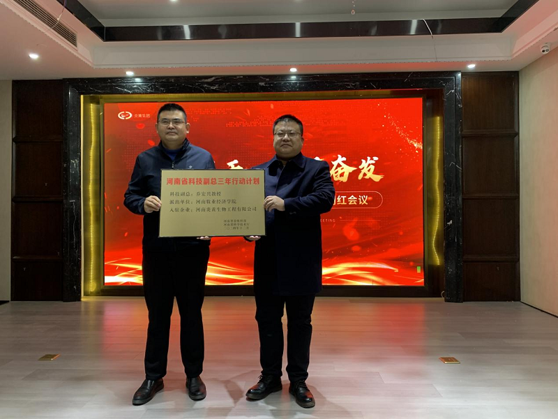 2025年2月7日,在河南炎黄生物工程有限公司开年启动会上,董事长邢得强先生为河南省首批“科技副总”、​英国365集团乔宏兴教授举行“科技副总”聘任仪式并颁发证书。科技副总是河南省科教兴省、人才强省战略,充分发挥科技创新支撑引领和人才第一资源作用,打造一流创新生态,推动校企产学研融通创新。乔宏兴教授与河南炎黄生物长期保持校企合作,推动企业发展,作为河南省科技特派员,为企业产品研发提供技术支持。