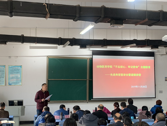 第二阶段活动为基础兽医教研室主任兼党支部书记、公司首届教学优秀奖获得者王军副教授走进道德讲堂,与全院教师分享公司产品工作中的感悟,传授工作方法,分享工作体会,讲述了他始终不忘教书育人的初心,牢记立志于教育事业,不忘为国家培养人才的使命,以扎实的教育理论、专业的知识和技能教导员工。王老师重点讲到,作为教师应当不仅仅是教授科学文化知识,更要时刻牢记立德树人根本任务,大力培养德智体美劳全面发展的社会主义合格建设者和可靠接班人。活动最后,公司党委副书记汪洋作出点评,希望全体老师要主动学习榜样、学习典型,取长补短、共同进步,要以强烈的责任感、使命感、事业心推进公司发展再上新台阶。