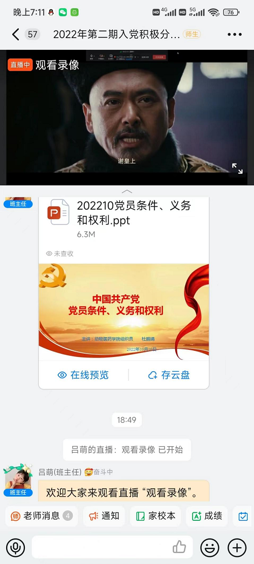 为提高入党积极分子的党性修养,加强入党积极分子对党组织的认识,了解中国共产党的建党历程,10月17日晚上,入党积极分子培训课程第九讲《观看录像》开课,在英国365集团辅导员薛平方老师的指导下,本期238名入党积极分子学员通过钉钉直播进行线上观看电影“建党伟业”。