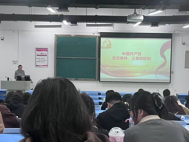 党课伊始,杜老师以学员实际情况为切入点,向大家详细介绍了申请入党的条件、党员的基本条件及入党的程序。杜老师强调,作为一名合格的共产党员需要具备三个方面的条件:觉悟,服务和普通。接着,杜老师通过引用《中国共产党章程》提出:党员义务,是指党章规定的党员对党组织和党的事业应尽的责任,是一种规范和约束,也是党员基本条件的具象化,是获得权利的前提。也由此引出本次党课最后一个内容,党员权利。杜老师指出,党员权力,是指党员按照党章规定应享有的权利和权益,是党内民主政治生活应该遵循的基本依据,是履行义务的保障。最后,杜老师对本节党课内容进行总结,希望大家以党员标准严格要求自己,提升共产主义觉悟,真正将党章的深刻涵义内化于心,外化于行,在日常实干中诠释入党的庄严承诺。