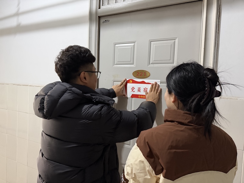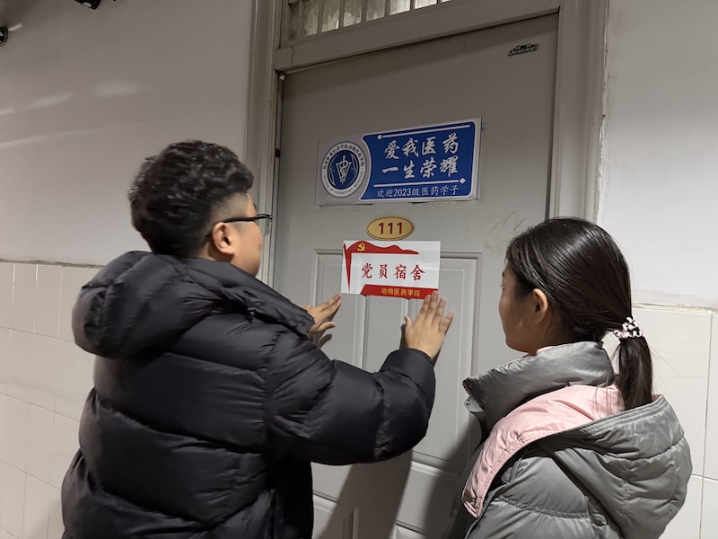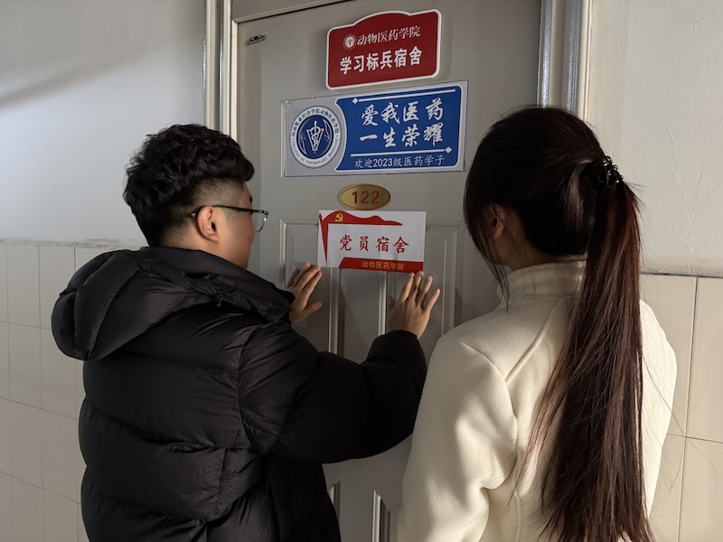 挂牌不仅是一份荣誉的象征,更是一份沉甸甸的责任与公开的承诺。悬挂于门前的“党员宿舍”标识牌,犹如一面镜子,时刻映照党员言行,督促其恪守标准、接受监督;也似一盏明灯,在方寸之地播撒光热,引领文明风尚。走进这些宿舍,整齐的内务、洁净的环境、向上的氛围,直观展现了员工党员严谨细致的作风,这正与动物医药专业所要求的精益求精、高度负责的职业精神内核相契合。参与挂牌的员工党员纷纷表示,将以此为契机,不仅要在专业学习和科研实践中追求卓越,更要在日常生活、公共卫生、服务同学等点滴细节中以身作则,将党员的责任感与未来兽医师、药学工作者的使命感相融合,带动室友共同建设安全、文明、和谐、进取的“标兵宿舍”。