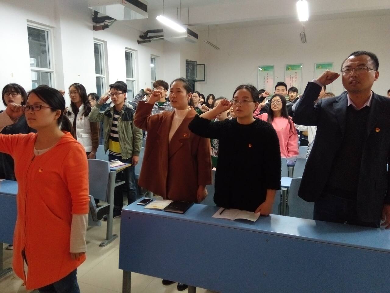 学习活动结束后,全体与会党员面对党旗进行了重温入党誓词活动。