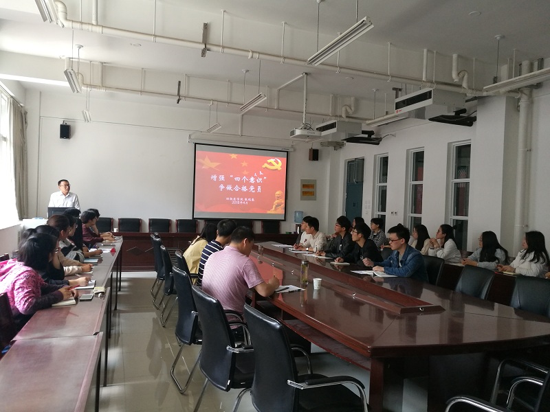 张书记以《增强“四个意识”争做合格党员》为题目,紧紧围绕十九大精神,密切结合学习、工作与生活实际,从三个方面向同学们着重论述了应如何增强“四个意识”,争做合格党员。他指出,基础在认识,要充分认识增强“四个意识”的必要性和重要性;关键在理解,要深刻理解增强“四个意识”的科学内涵;同时指出,要强化增强“四个意识”实践。最后,张书记勉励在座的的党员和预备党员,应把增强“四个意识”内化于心,外化于形,落实到个人成长成才的过程中,把锤炼党性修养作为终身的必修课。