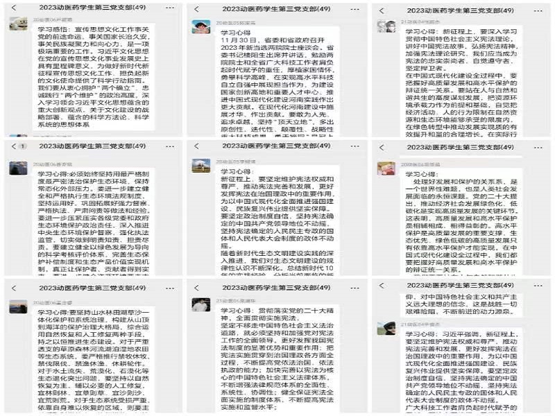 按照《关于开展2023年12月份党支部主题党日活动的通知》校组〔2023〕26号文件精神要求,各党支部书记带领党员们深入学习了习近平总书记在第十个国家宪法日之际的重要指示精神,以及《求是》杂志上发表的习近平总书记关于推进生态文明建设需要处理的重大关系一文。通过学习,党员们更加深刻地认识到生态文明建设的重要性和紧迫性,纷纷表示将积极响应号召,以实际行动参与和支持生态文明建设。此外,党员们还集体学习了《事业单位工作人员处分规定》以及省委和省政府2023年新当选两院院士座谈会会议精神。通过学习,大家进一步明确了事业单位工作人员的职责和纪律要求,增强了遵规守纪的自觉性。同时,新当选两院院士的座谈会会议精神也激励着大家不断追求卓越,为科技创新和事业发展贡献智慧和力量。