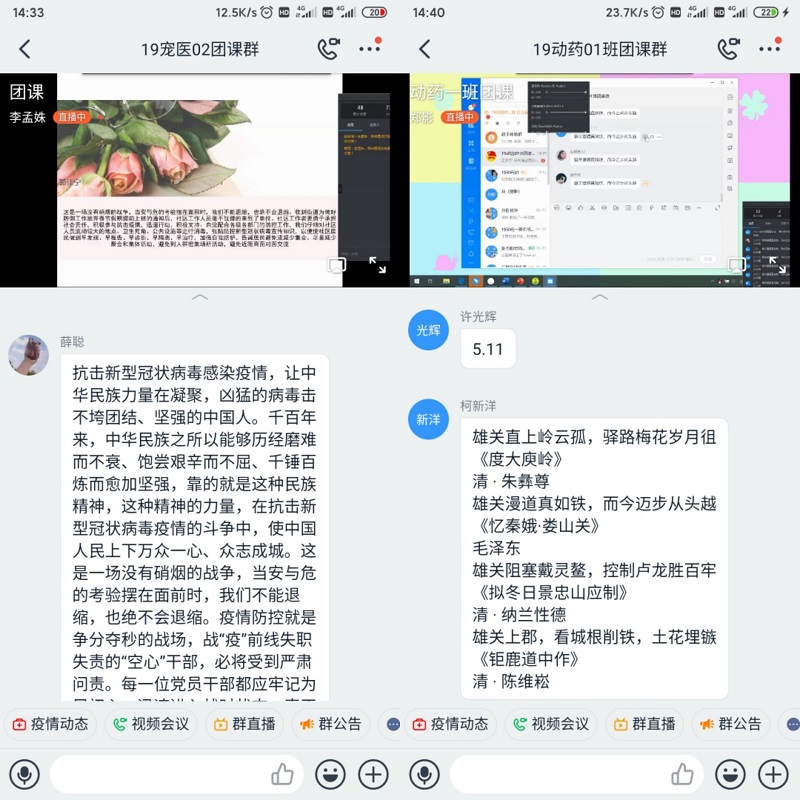 5月14日下午2:30,公司组织19级各班在钉钉团课群中开展以“中原抗疫勇担当,众志成城铸雄关”为主题的团课学习活动。