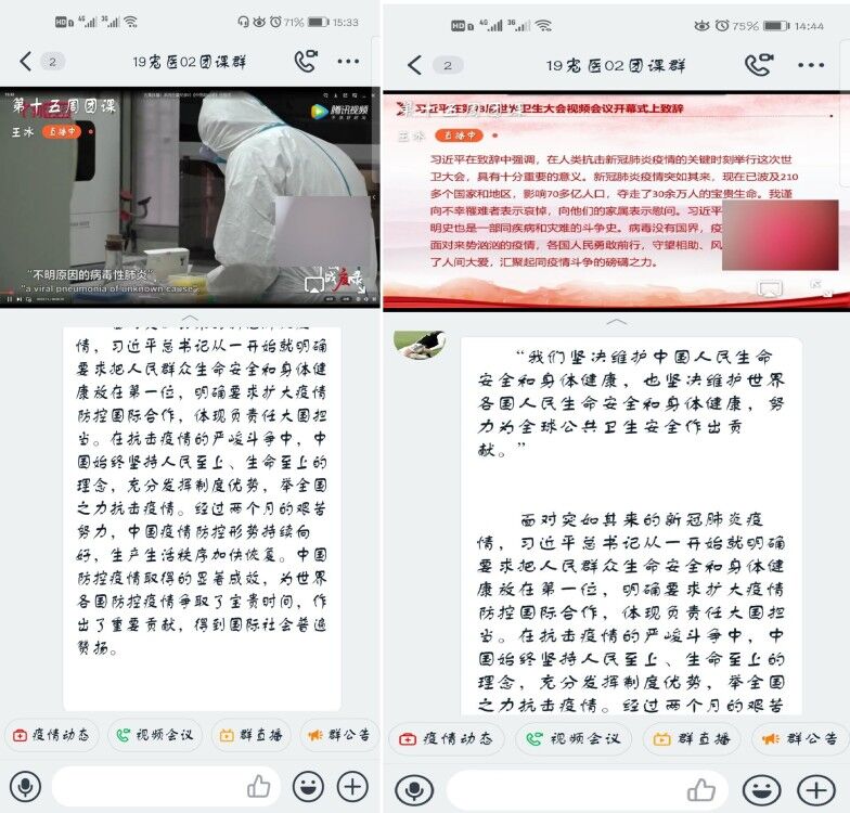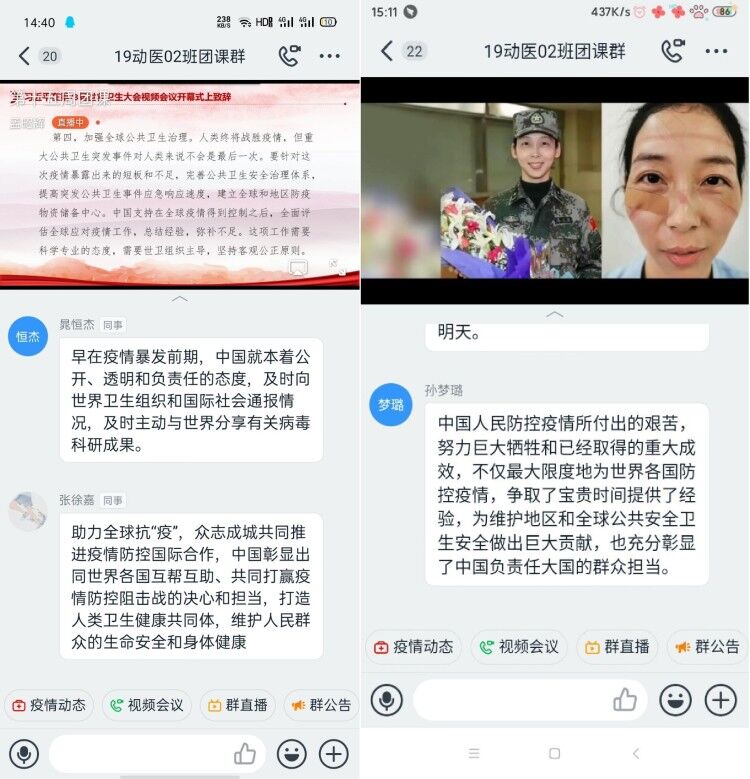 本次团课以直播的形式进行,主持人用深入简出的方式给同学们讲解了自疫情以来中国共产党所表现的担当与责任,并以此次疫情为例,将新时代青年与本次疫情联系起来,帮助同学们更好地理解什么是新一代青年的担当,同时同学们也在主持人声情并茂的讲解中明白了自己身上的责任。明白了在疫情当前,世界各国是一个休戚与共的命运共同体,关乎人类生存大计。紧接着讲述了抗击疫情时期涌现出的动人故事,引导同学们在积极应对疫情的同时,学会总结反思,学会自律,明确人生目标,积极承担责任,不断学习,不断进步,成就更好的自己。通过本次团课的深入学习和探讨,同学们纷纷表达了对一线战“疫”工作人员的敬佩与感激之情。他们表示,将继续学习战“疫”英雄们勇于担当、无私奉献的精神,主动学习,夯实基础,积极配合疫情防控,为打赢疫情防控阻击战贡献一份力量。