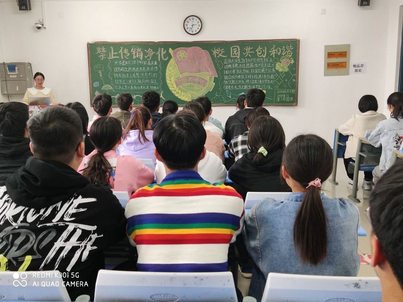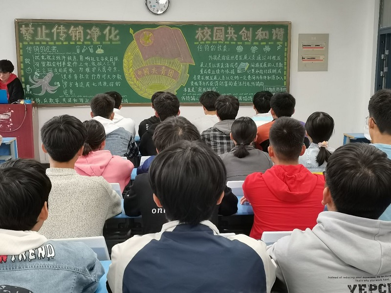 11月5日下午2:30,公司组织20级各班在团课教室中开展团课学习活动。本周团课是以“禁止传销,净化校园,共创和谐”为主题,旨在加大对传销危害的宣传力度,增强师生识别传销、防范传销、抵制传销的能力。
