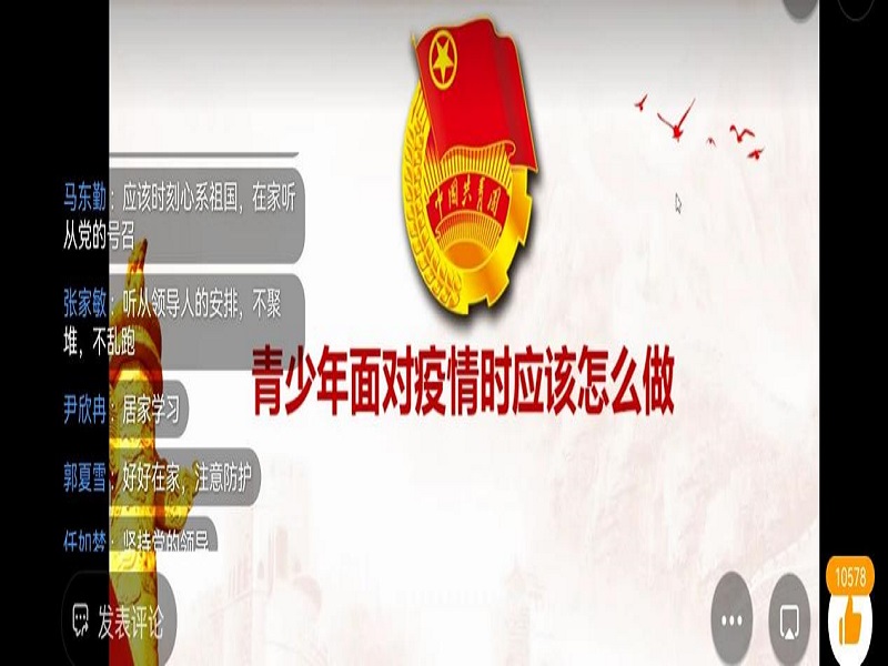 团课学习活动中主持人讲述了校团委深入贯彻落实习近平总书记重要指示,团结带领全校,迅速行动、众志成城、防汛抗疫,扎实开展防汛救灾、帮扶救助和卫生防疫工作,全力保障师生的生命财产安全的优秀事迹,并号召同学们要提高思想认识,扛牢政治责任。同学们表示,要坚定贯彻习近平总书记重要指示和党中央、国务院决策部署,充分认识到疫情防控形势的复杂性、严峻性和重要性,坚决执行公司疫情防控工作要求,主动投身疫情防控斗争第一线,主动带头坚守岗位,发扬无私无畏精神,顾全大局,把灾难当教材,敢于担当、主动作为,为打赢抗疫抗洪的双线战役做好充分准备。