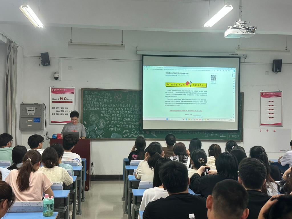 本次团课分为两个部分。第一部分为“悦纳自我 青春同行”。团课伊始,各班主持人通过PPT讲解、观看相关影视作品等形式,引导同学们深入思考悦纳自我的重要性,使同学们加深了对心理健康教育的了解。随后,主持人通过讲述一系列生动鲜活的实例,帮助同学们深刻认识到如何用心去体验和感悟生活的美好,发现并享受生活的乐趣,并最终实现个人的价值。主持人表示同学们应学会合理应对学业、就业、人际、恋爱等方面带来的压力,正确认识、接纳、关爱和发展自我。