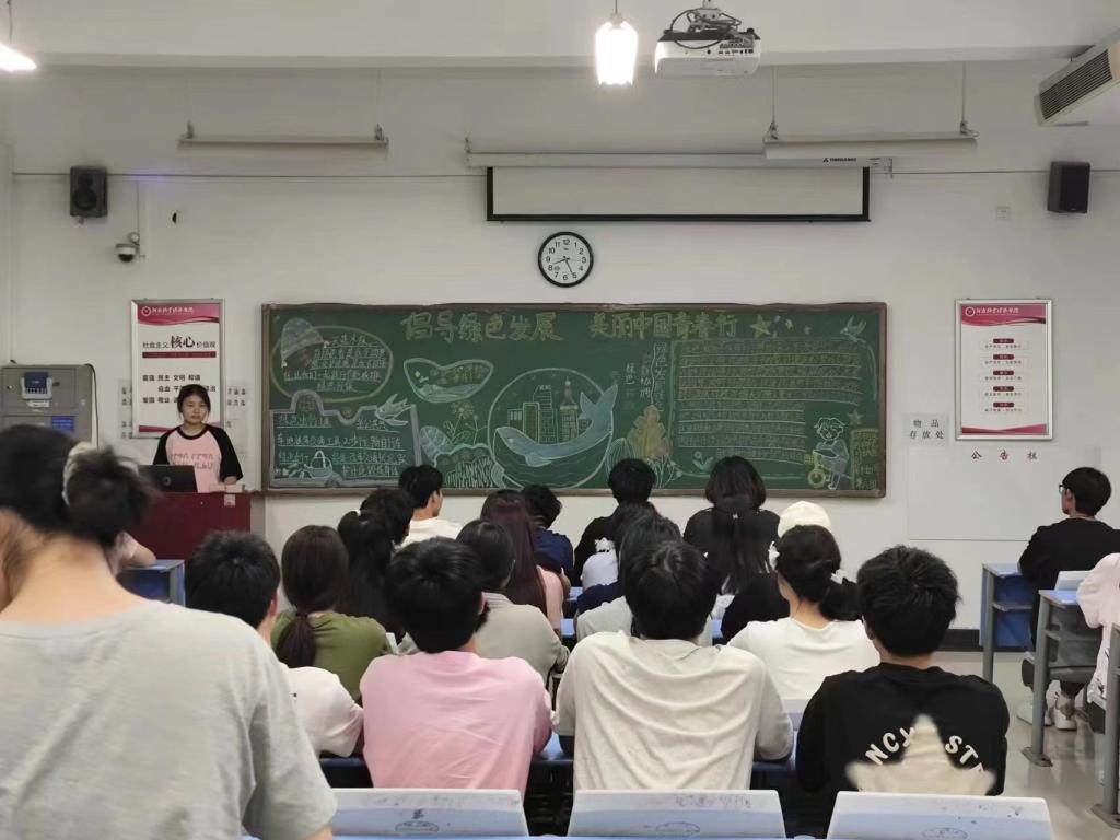团课伊始,主讲人通过PPT展示从新时代生态文明建设的成就、绿色发展的重大战略部署及新时代建设美丽中国的历史使命三个方面展开讲授,使同学们深刻认识到绿色发展是环境保护的核心战略,也是社会可持续发展的必然选择。随后,主讲人播放纪录片《人类星球》,让同学们深刻感受到青年在共建美丽中国中的责任和使命,引导同学们从自身做起,将环保行动落实到日常生活中,为绿色发展贡献一份力量。接着,同学们围绕绿色发展主题进行了激烈的讨论,大家纷纷表示,将积极响应团组织的号召,以实际行动参与到绿色发展中来,在日常生活中践行绿色出行、垃圾分类,节约能源、减少浪费等环保行为。团课最后,主讲人着重强调要拒绝“口头式”绿色行动,绿色在于坚持,环保在于行动,从自我做起,从点滴开始,为生态文明建设和生态环境保护贡献青春力量。