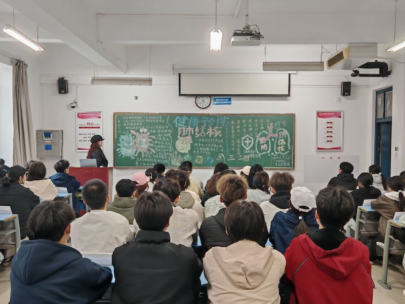 团课伊始,主持人首先带领大家观看结核病防治宣传片,对肺结核的传播途径、常见的症状及危害等关键内容进行了系统地介绍,以清晰易懂的方式向同学们阐述了结核病的基本知识。通过案例分析,主持人向同学们直观的展现了结核病的危害以及科学防控的重要意义,他强调:每个人都是自己健康第一责任人,要主动学习结核病防治知识,将科学方式理念转化为日常生活的自觉行动。随后鼓励同学们踊跃发言,分享自己所了解的结核病防范要点,在热烈的气氛中进一步加深了对疾病的认识和理解。最后主持人结合我国结核病防治现状,如公众认知存在误区、基层防治能力不强等,指出我国仍位列全球结核病高负担国家,终结结核的流行需要全社会持续努力,同时呼吁青年团员主动承担社会责任,成为结核病防治知识的传播者,带动更多人参与到终结结核病的行动中来。