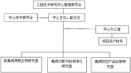 根据国家相关法规,结合当前禽病防控技术难题和产品开发的需要,在依托单位内部,整合技术资源,构建研发主体。实行项目管理合同制,依据中心的发展和研究项目内容,聘任项目组长,由项目组长组织编制项目的成本预算、资金需求计划、项目实施计划、小组成员的构成,经中心主任审批后执行。