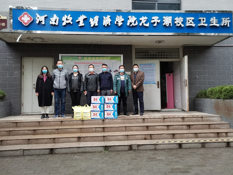 4月10日上午,2017级宠物养护01班员工杨笑莹向公司捐赠消毒液、口罩一批,公司党委书记刘永录、党委副书记汪洋、团总支书记王宏魁及辅导员樊明明协同校医院程占彪大夫共同代表校医院接受了该批捐赠物资。