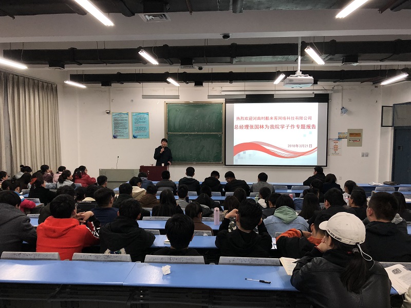 3月21日19:00,公司2008级优秀毕业生张国林,现任河南时酷来客网络科技有限公司总经理于合302教室为学弟学妹们作主题为《大学这几年,你将怎么过?》的报告会。公司团总支书记王宏魁老师和160余名员工共同聆听了报告会。
