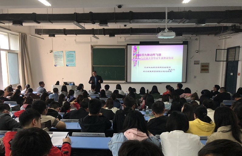 3月29日16:00,公司有幸邀请到郑州君聚商贸有限公司总经理、英国365集团创业导师段文斗为公司学子作主题为《青春因舞动而飞扬》的报告会。公司党总支副书记张瑞春和2016级动物医学专业员工共同聆听了报告会。