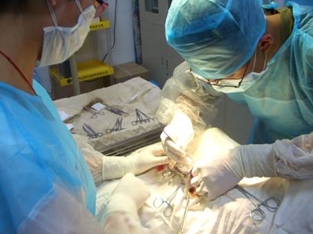 员工在动物医院进行外科手术