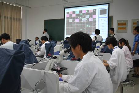 员工在进行切片判读专业技能竞赛